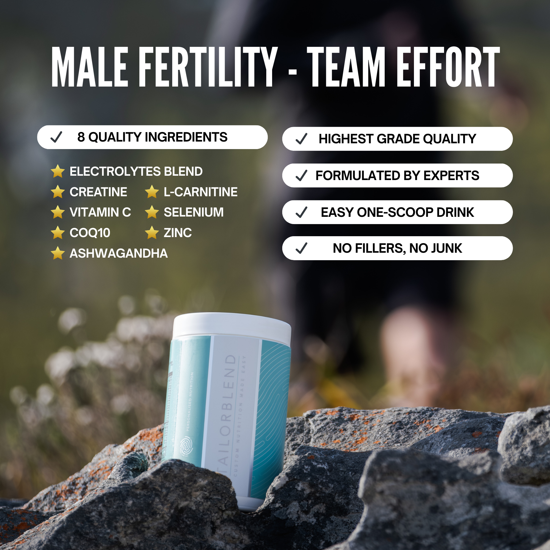 Advanced Male Fertility Support to complement HER Hormonal Harmony routine. Because healthy fertility & conception are a team effort.