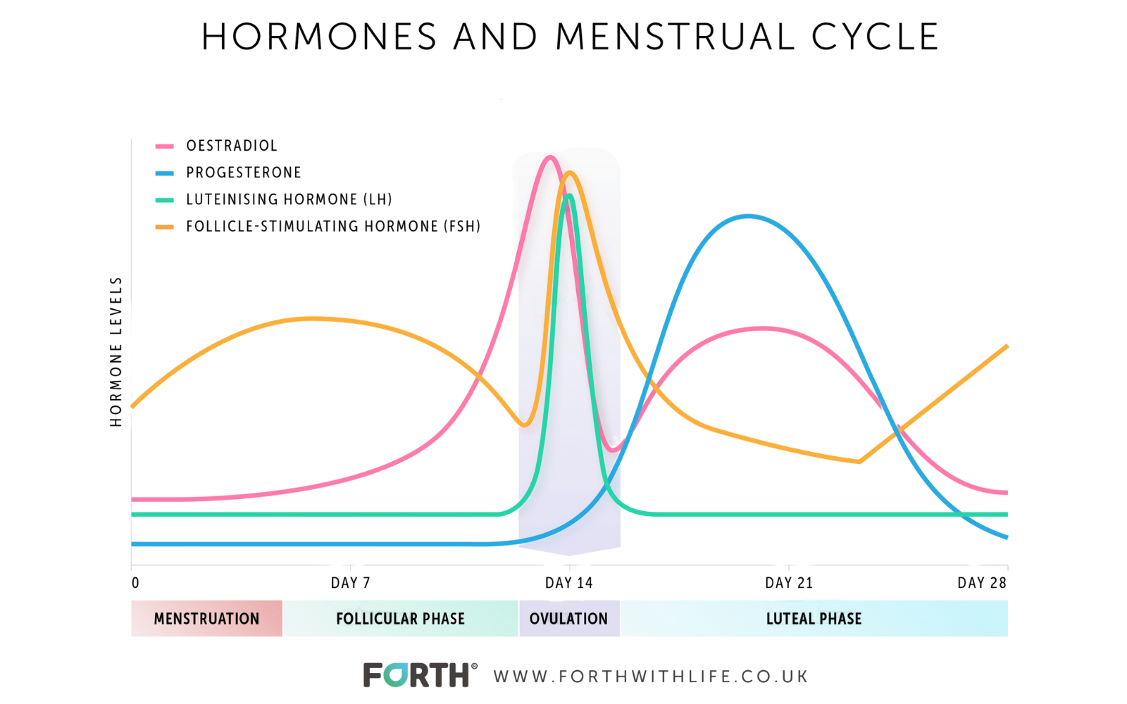 Throughout the month, estrogen, progesterone, LH, and FSH (as well as other key hormones & markers) naturally rise and fall in harmony with each phase of your cycle.